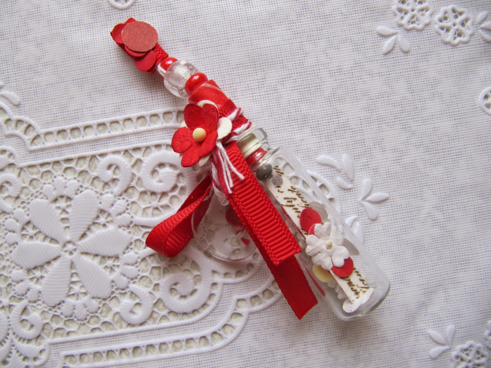 Маленькая пробирочка обильно украшена снаружи ! Внутри - цветочки , бусинки , бисер ! Как говорится , мелочь , а приятно !